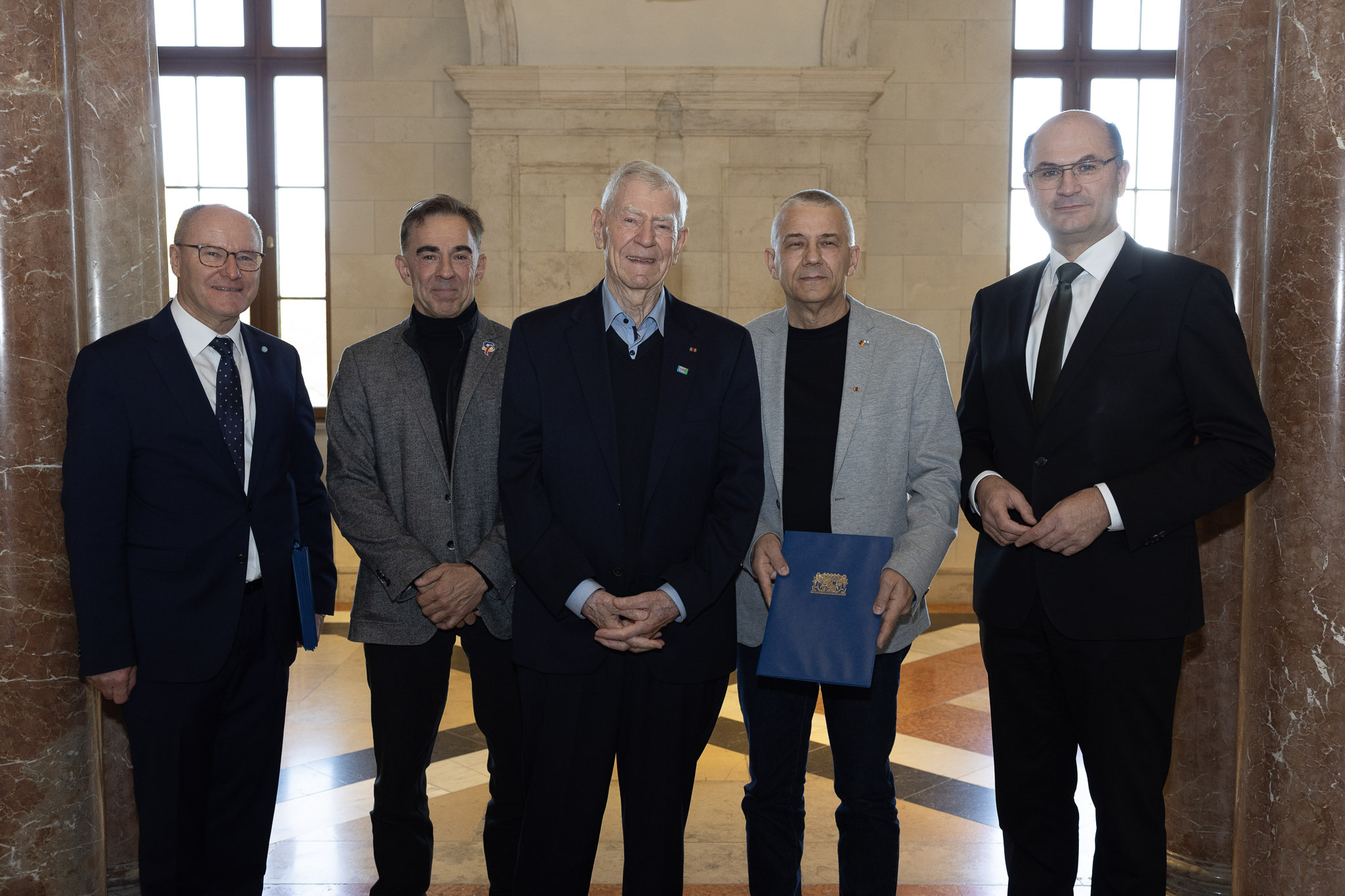 Finanz- und Heimatminister Albert Füracker überreicht Ernennungsurkunden an Präsident und Vizepräsident des LfSt